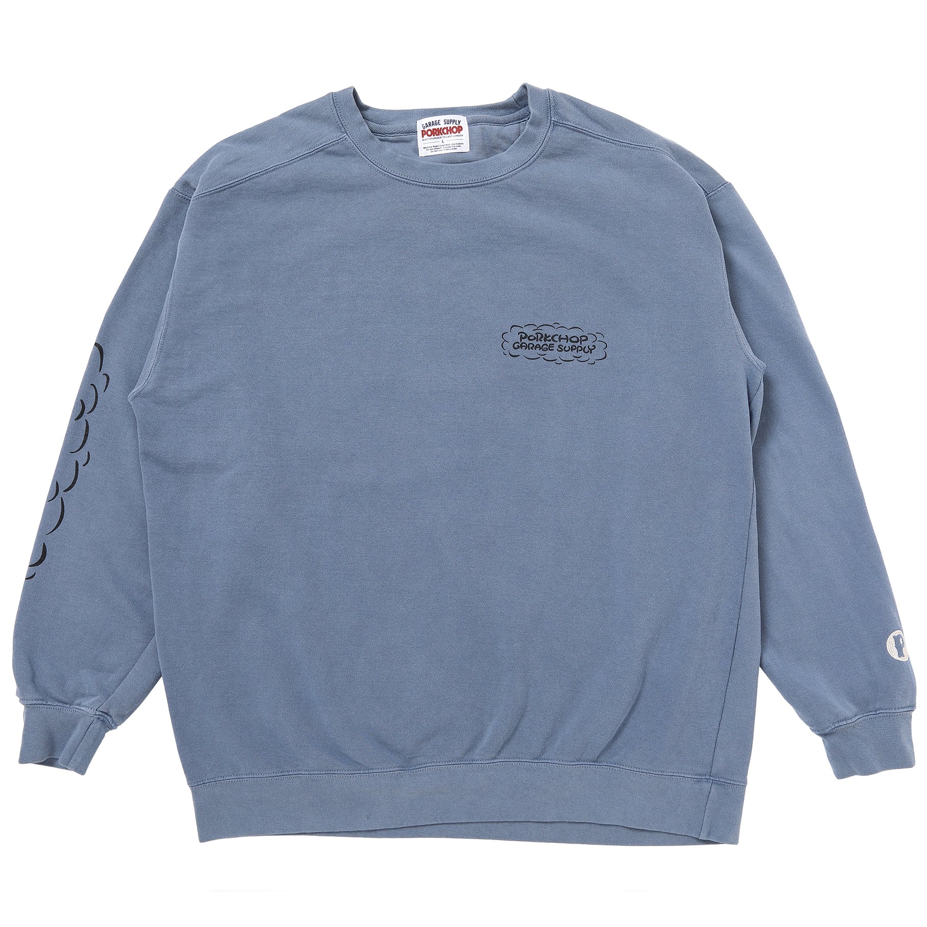RUNNING LOGO SWEAT COLOR:BLUE GRAY FABRIC:9.5oz COTTON 80% POLYESTER 20% (Brushed back) PIGMENT DYEING SIZE:着丈×身幅×裄丈 M:72×58×85 L:75×64×90 XL:77×67×93