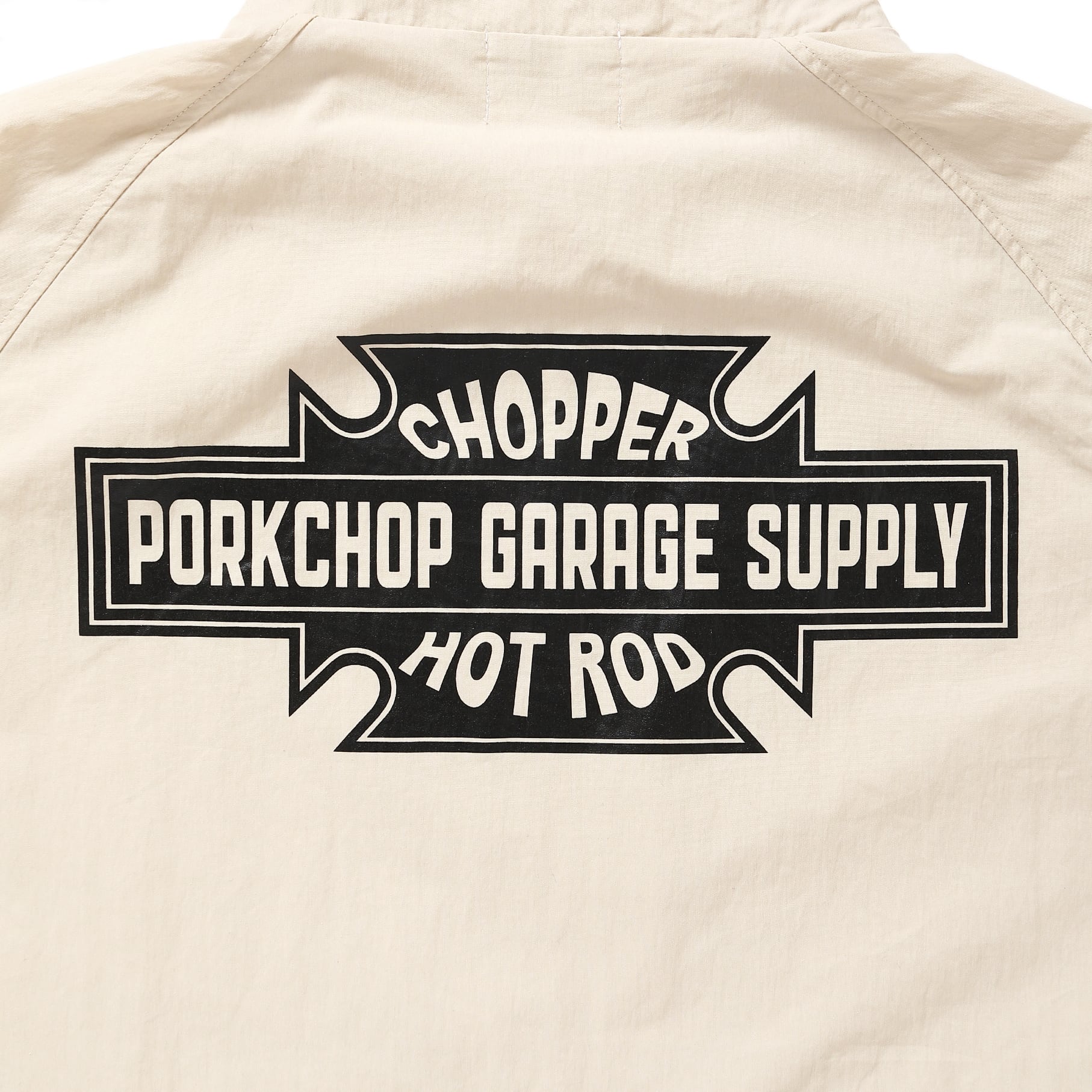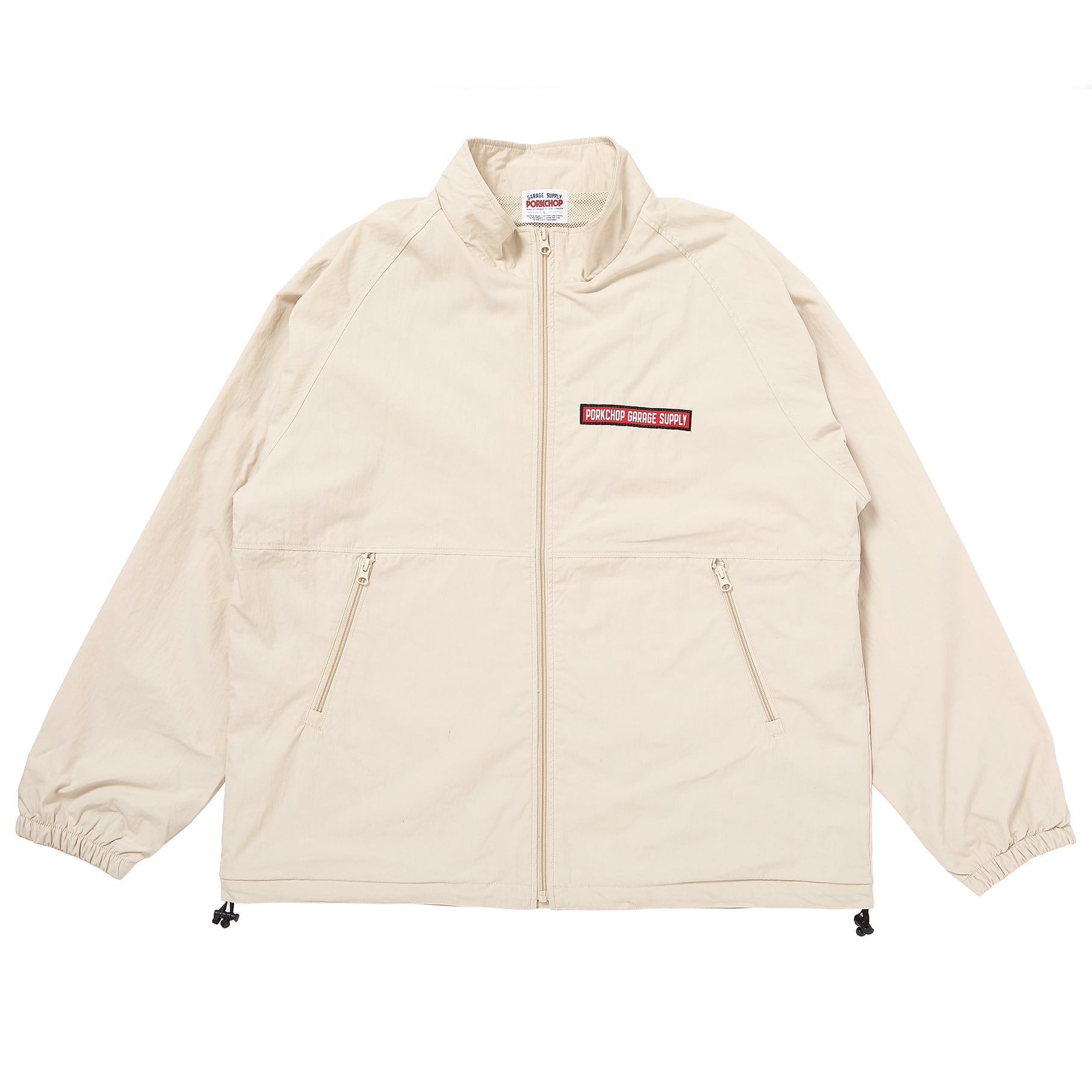 BAR&SHIELD TRACK JKT COLOR:CREAM FABRIC:OUTER MATERIAL COTTON 60%・ NYLON 40% LINING MATERIAL POLYESTER 100% ※ラグランスリーブ・撥水加工 SIZE : 着丈×身幅×袖丈 S:72×62×78 M:76×65×80 L:80×68×82 XL:84×72×83