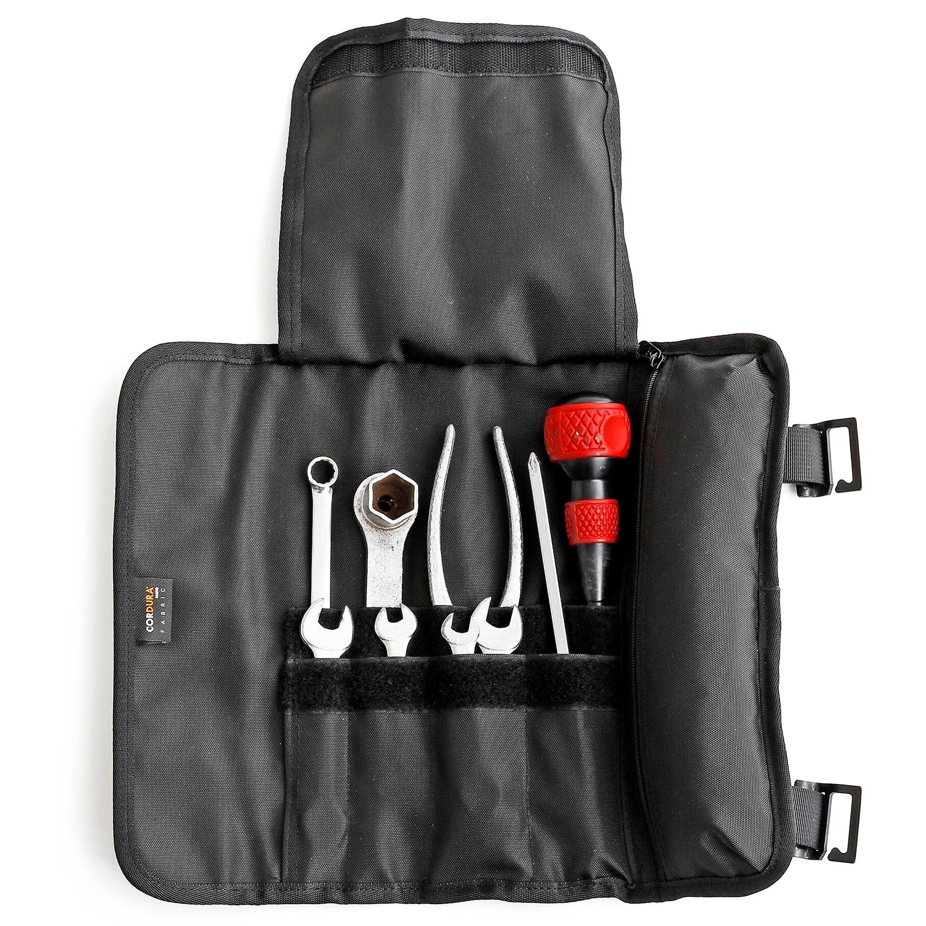 TOOL BAG COLOR:NAVY 素材:コーデュラナイロン ミルスペック規格金具仕様 ※画像2枚目は使用イメージです。 工具は付属しておりません。 SIZE:横幅26cm/直径7〜9cm